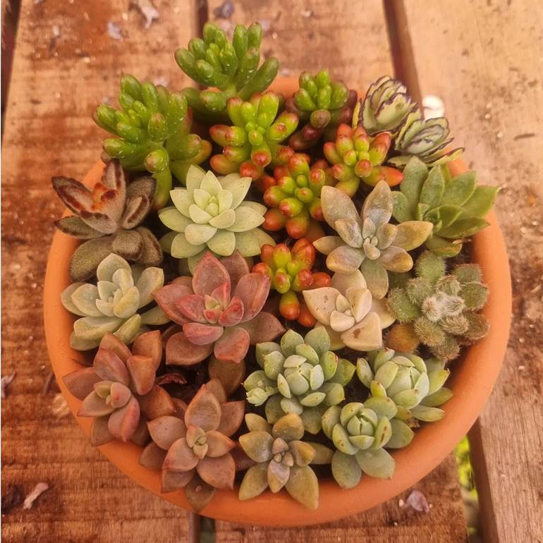 Um belo arranjo de suculentas deve ter cor, textura e formatos. Então, deixar a criatividade fluir é essencial nesse processo. Você pode ver algumas referências de quais suculentas utilizar: