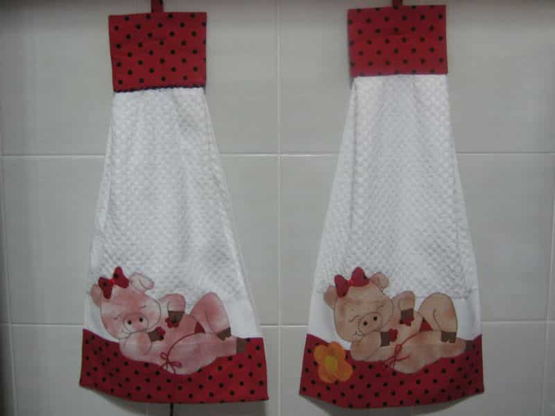 Transfira o molde para o tecido. Recorte duas partes. Se quiser você pode fazer o bate-mão com retalhos de tecido. Costure uma parte à outra, deixando aberta apenas a parte inferior. Faça pregas em sue pano de prato, deixando a borda com o tamanho da abertura da parte de tecido. Costure o pano de prato na abertura, pespontando. Para finalizar a sua peça, pregue o botão e faça a casinha. E está pronto!