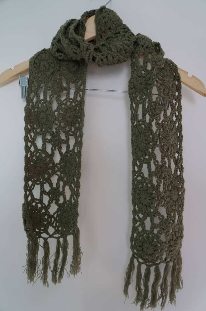 As flores feitas em crochê deixam o seu cachecol com um nível de beleza que ultrapassa o imaginável.