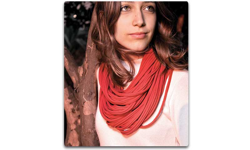 Hora de separar 1 tira para amarrar o cachecol. Depois junte as outras.