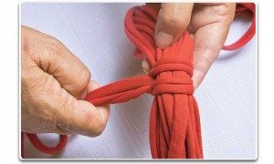 Por fim, você irá Puxar e apertar para segurar bem as outras tiras de tecido.