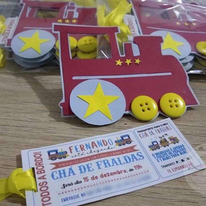 Além do usual formato quadrado ou retangular, muitos outros formatos vêm sendo utilizados. Com isso, formas que reproduzem itens do universo do bebê terminam sendo fundo para o convite. São modelos criativos e encantadores que têm a cara de um chá de fraldas. Convites em forma de: