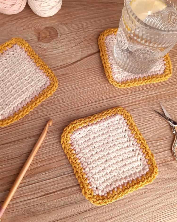 10 – Porta copos feito com pontos de crochê tunisiano para iniciantes