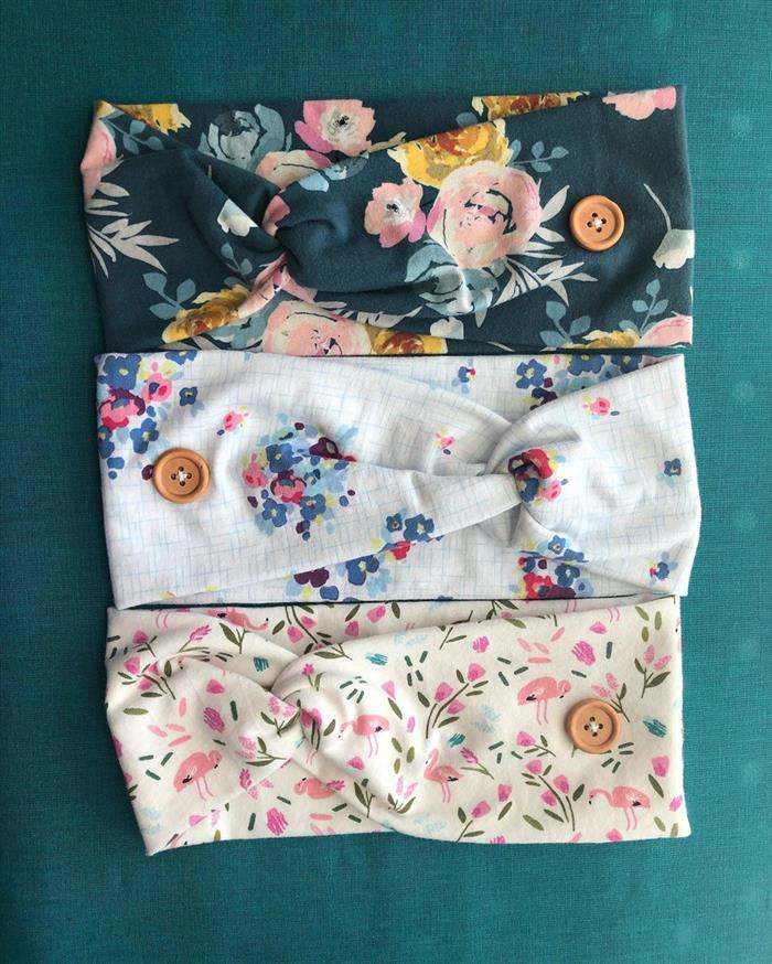 A faixa pode ter alguns modelos diferentes. Poderá ser feita como uma tiara, com base, com uma parte mais longa para amarrar atrás da cabeça, ou com o elástico franzido e inteira, para colocar por baixo do cabelo.