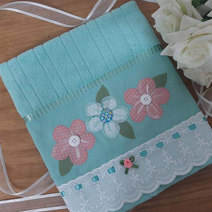 60- A toalha pode ganhar a combinação de patchwork com patch aplique