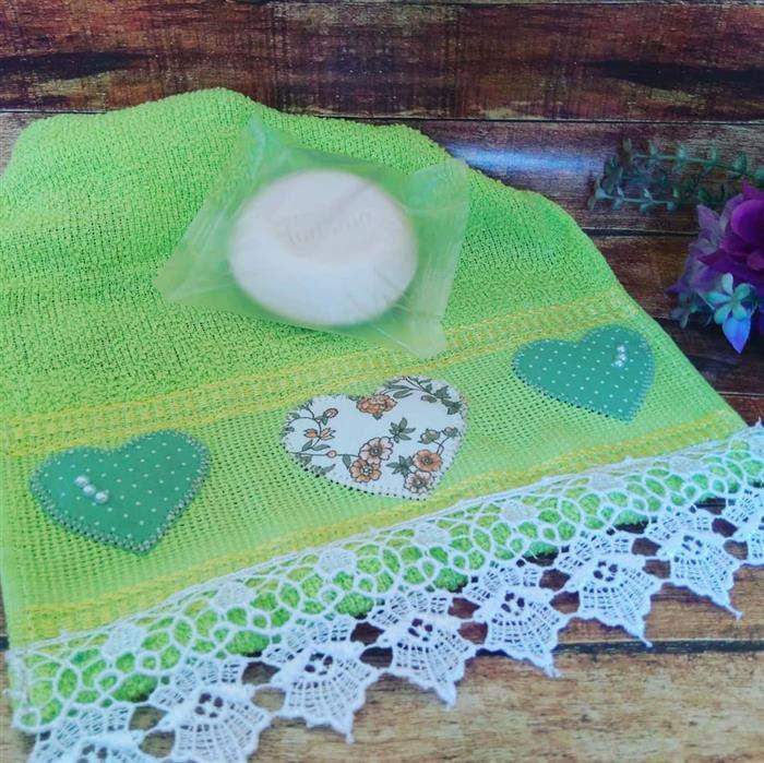 19- As toalhas de mão ficam ainda mais delicadas com o patch aplique