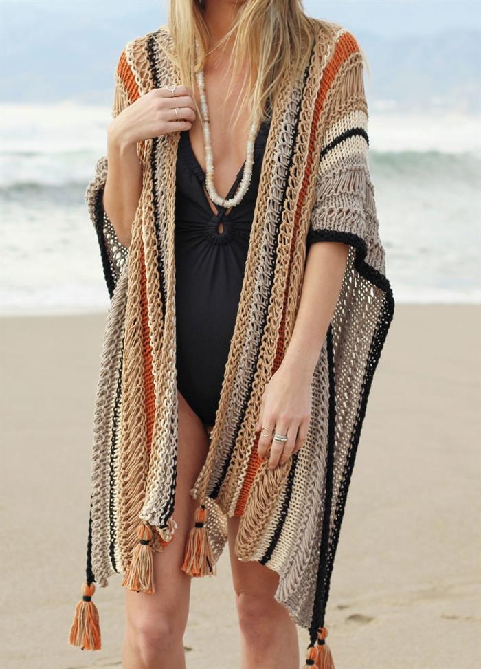 Então, procure fazer peças bem soltas e confortáveis, usando linhas com diferentes cores para criar contrastes e deixar a saída de banho de crochê mais alegre.