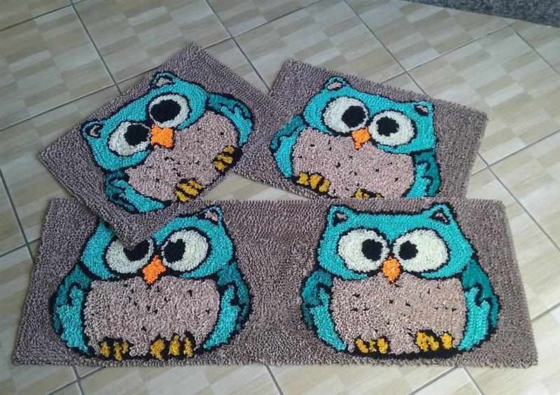 Na cozinha, as figuras mais usadas em tapetes de frufru são: utensílios, animais e frutas.