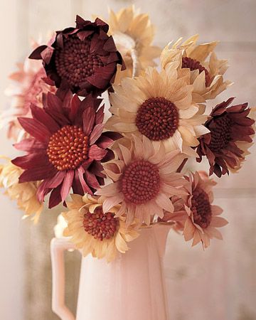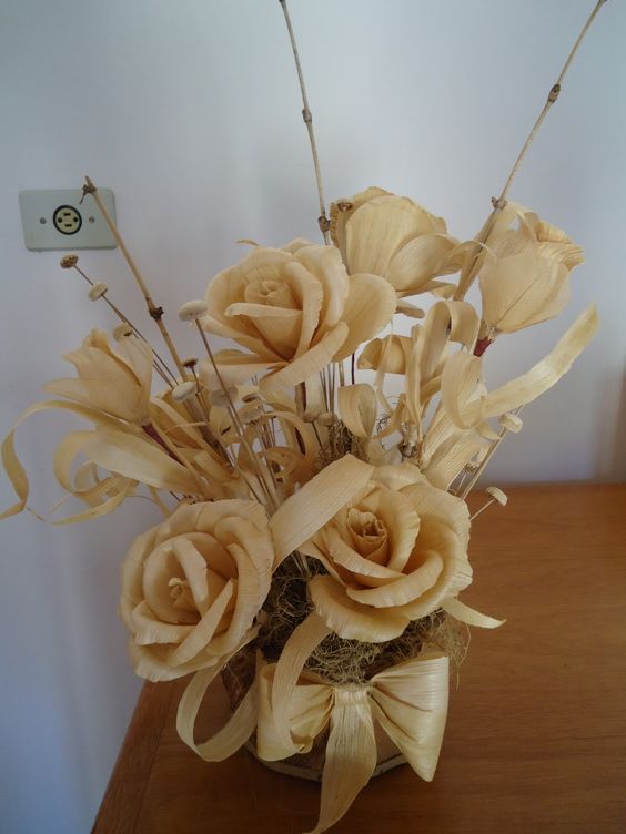 O artesanato mais tradicional feito com palha de milho é a flor. E esta flor pode possuir diversos modelos, estilos e cores. E as flores podem ficar soltas, decorando de forma avulsa, e podem também ser arrumadas em um arranjo, criando um belo visual no ambiente onde estiver posicionado. Se você quiser pode deixar a flor com a cor original da palha do milho, sem nenhuma pintura.
