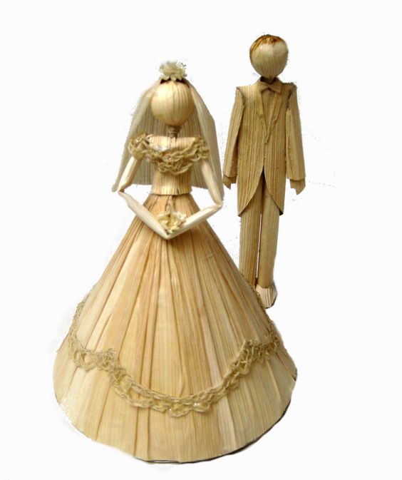 Quem já tem experiência em desenvolver artesanatos com palha de milho pode fazer noivinhos de palha de milho, para decorar o topo do bolo de casamento. Os noivinhos feitos com palha de milho também podem receber cores ou não, de acordo com a sua preferencia ou de acordo com a preferência dos noivos, caso você for comercializar estas simpáticas peças feitas com palha de milho.
