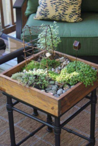 Para quem gosta de peças bem diferentes e até mesmo inusitadas pode optar por montar um minijardim em uma cômoda com gavetas pequenas, ou até mesmo uma cômoda comum, e plantar as suas plantinhas preferidas dentro das gavetas da cômoda.
