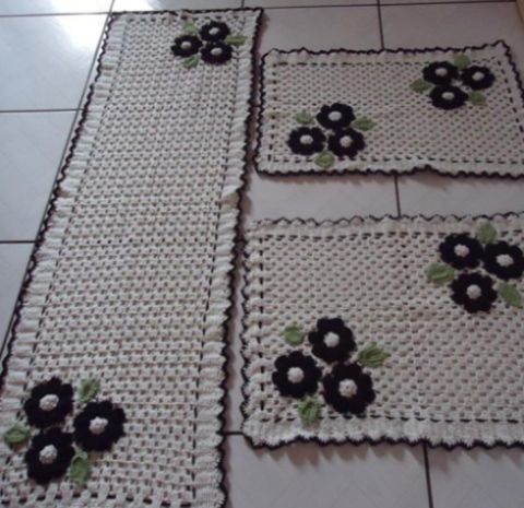 Confira 11 Tapetes de Crochê para Cozinha Preto e Branco