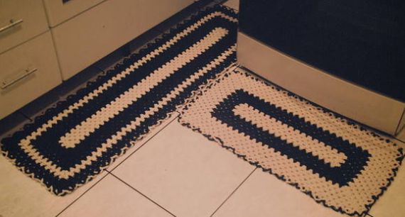 Para a sua cozinha você pode confeccionar um único tapete em preto e branco ou fazer um joguinho de tapetes, com tapetes menores e também com passadeira (tapete mais comprido e estreito para ser posicionado sob a pia de sua cozinha). Lembrando que você não precisa ter medo de exagerar na quantidade de tapetes em sua cozinha, já que a dupla preto e branco são cores básicas e não são chamativas.