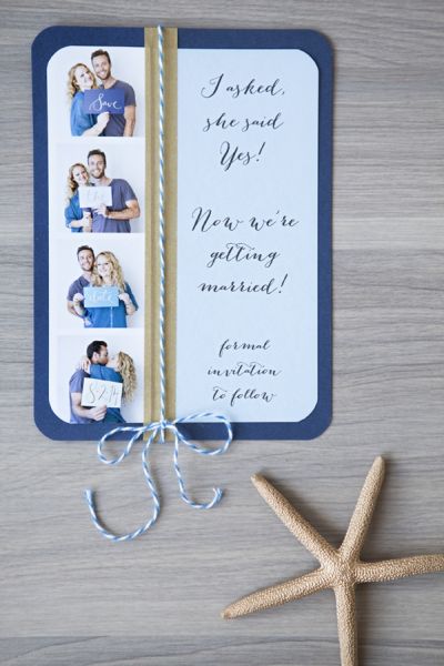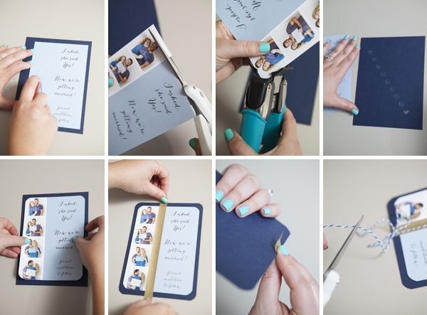 Créditos:http://somethingturquoise.com/2014/06/06/diy-photo-strip-save-date/