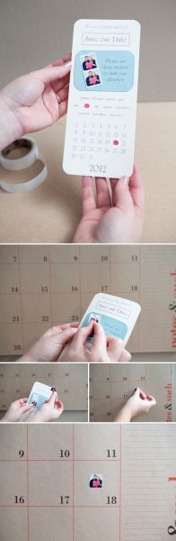 Outro simpático convite save the date é o modelo impresso como se fosse um calendário (com a data do casamento marcada), com ou sem mensagem, e que possui ainda minifotos dos noivos para que o convidado destaque e fixe no calendário de sua casa, para não esquecer a data do casamento.