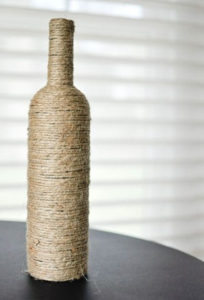 Outra maneira bem simples de utilizar o barbante para conseguir uma peça de decoração é revestindo uma garrafa com várias voltas de barbante. Vá colando cada volta com o auxílio de uma pistola de cola quente e após terminar o artesanato você pode acomodar dentro da garrafa uma flor ou galhos secos.
