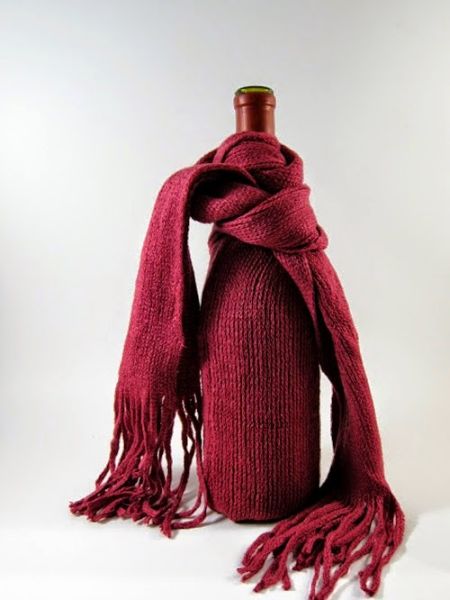 Para quem não quer gastar nada para criar uma embalagem para garrafa de vinho, vale utilizar uma blusa velha e um cachecol velho, costurando uma manga da blusa de forma que crie a embalagem para a sua garrafa de vinho e utilizando o cachecol como um enfeite diferenciado para a sua peça. E você pode costurar a manga da blusa velha à máquina ou à mão. E se você quiser, pode ainda criar um efeito diferenciado na borda da sua embalagem. E qualquer tipo de tecido, de malha, de crochê ou de tricô pode ser utilizado para a confecção desta embalagem para garrafa de vinho.