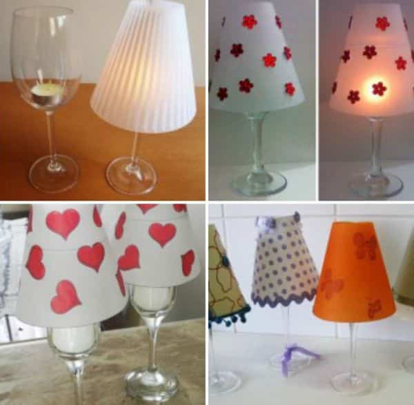 Um facílimo abajur pode ser conseguido com uma taça, uma vela de LED e uma cúpula feita com papel decorado.