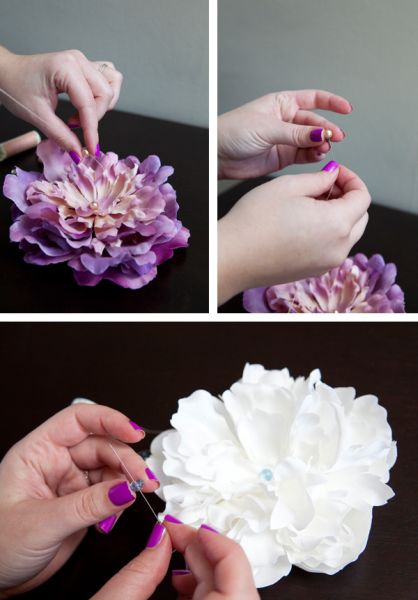 Créditos:http://somethingturquoise.com/2011/08/03/diy-flower-hair-piece/