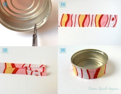 Para finalizar a sua peça, amasse a parte interna da lata de atum e encape a lata com o tecido de sua preferência. E está pronto! Agora que aprendeu a fazer um agulheiro com material reciclável passo a passo, faça muitos, um de cada cor.