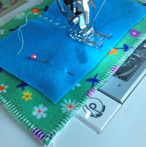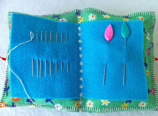 Agora, una a página interna de feltro com a capa de seu alfineteiro, costurando o meio com ponto simples ou decorativo, dependo de sua preferência.