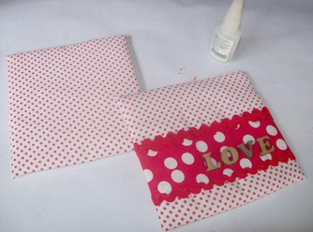 Agora, encape com o tecido de sua preferência as capas envolvidas com a manta acrílica. Mas lembre-se de espalhar bem a cola, para não enrugar o material.