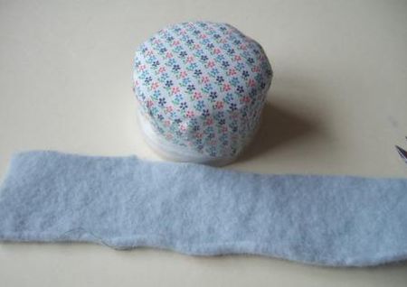 Logo após, retire os alfinetes para costura e corte uma tira de feltro com a altura da caixinha.