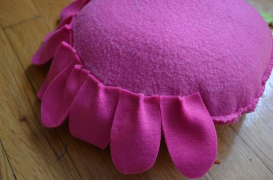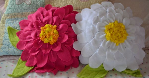 Créditos:http://www.cometogetherkids.com/2011/03/fleece-flower-petal-pillows.html.