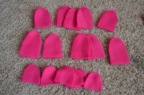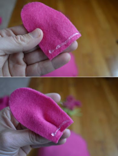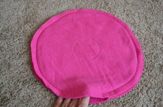 Comece desenhando, cortando e costurando ou colando dois círculos de feltro com a cor de sua preferência. Mas deixe uma abertura.