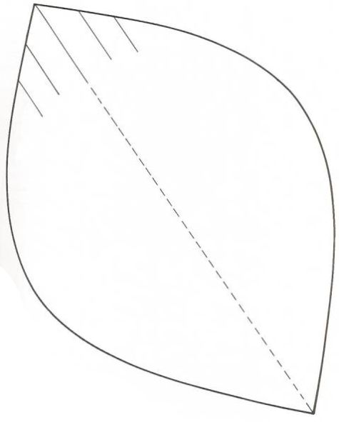 Para fazer esta peça você irá precisar de: soft ou feltro com as cores de sua preferência; tesoura comum; tesoura para picotar (opcional); cola para tecido ou cola quente; máquina de costura; linha para costura na cor verde e também com a cor do centro da flor (opcional); manta acrílica, espuma ou o enchimento de sua preferência; e molde da folha (imagem a seguir).