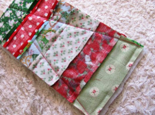 Comece cortando faixas de 6 cm de vários tecidos com as cores ou estampas que você desejar. O comprimento vai depender do tamanho de tecido que você possua, podendo cada faixa ter o comprimento que você quiser.