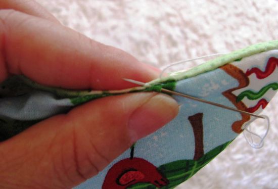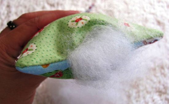 Com o auxilio de um pincel ou de uma tesoura, vire a peça para o direito e encha com o enchimento.
