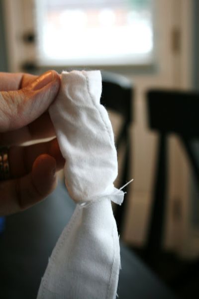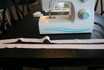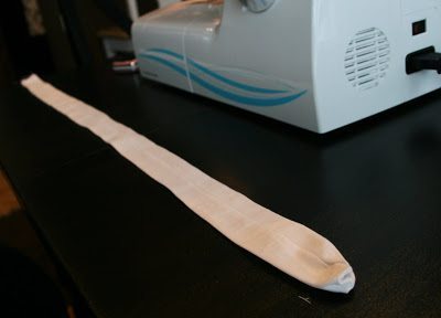 Logo após, costure a tira, mas deixe uma ponta sem costurar.
