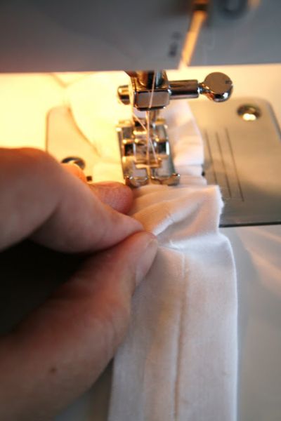 Logo após, costure no meio, seguindo as costuras anteriormente, mas franzindo a tira.