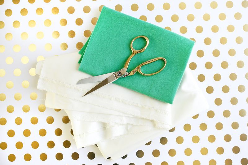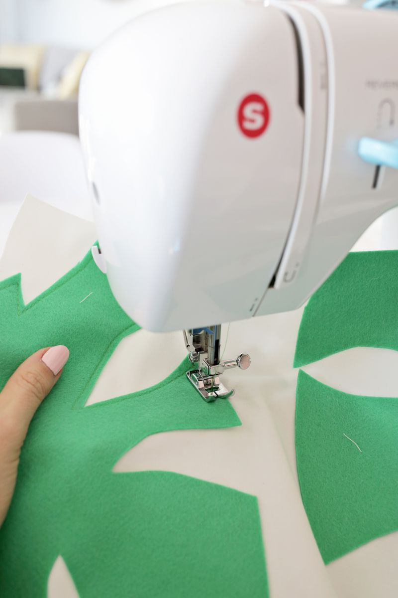 Costure as folhas de feltro no tecido, fazendo costuras retas no contorno das folhas.