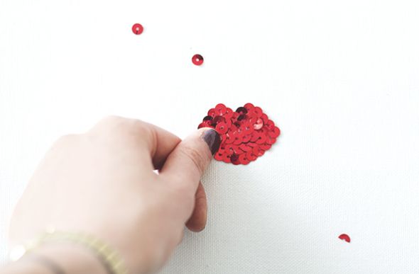 Agora, para finalizar a sua peça, basta você cortar pedaços do cordão de lantejoula, aplicar cola no centro da boca, e completar o desenho aplicando os pedaços de codão de lantejoula sobre a cola que está aplicada. Deixe secar muito bem a cola antes de manusear a peça. E está pronto!