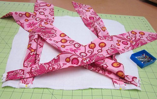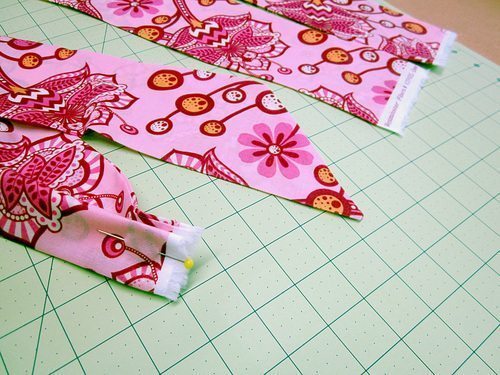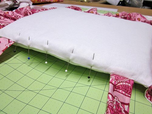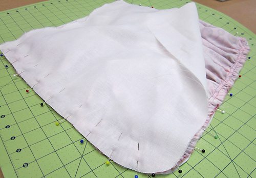 Logo após, posicione os babados por cima e prenda com alfinetes.