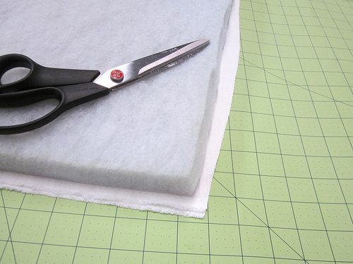 Em seguida, passe as medidas para os tecidos escolhidos, porém com uma sobra de tecido ao redor da espuma.