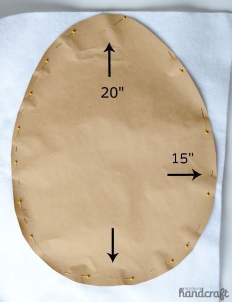 Em seguida, com o molde de ovo de Páscoa com o tamanho que você quiser para a sua almofada, você deve transferir o desenho para o tecido que será a base ou para a manta acrílica fina. Recorte ao redor.