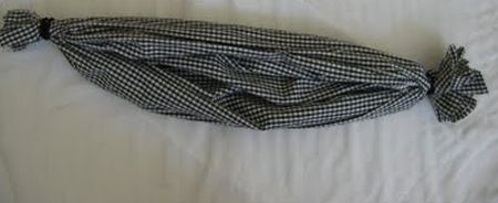 Logo após, posicione um elástico em cada ponta do tecido já dobrado em formato de tubo.