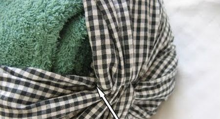Comece enrolando a toalha de banho mais grossa ou as duas toalhas mais finas de banho no rolo de papel-toalha.