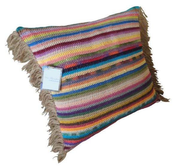 As almofadas de crochê coloridas podem também possuir detalhes bem diferenciados, como pelinhos, por exemplo, que são perfeitos para o inverno.