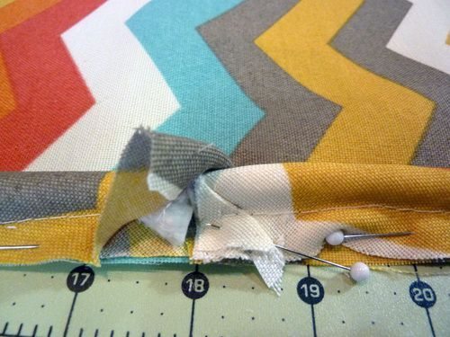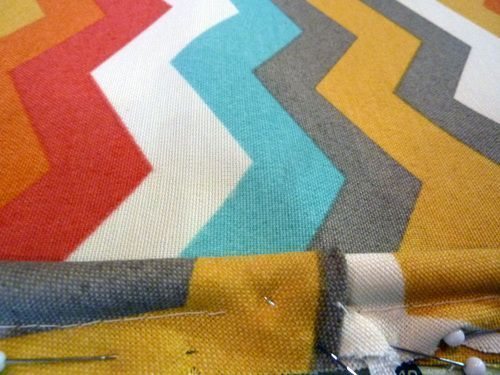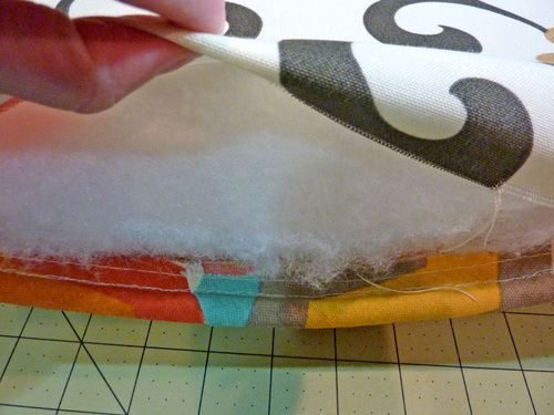 Agora, encaixe o encosto no assento, colocando a sobra de tecido da abertura para dentro, e costure.