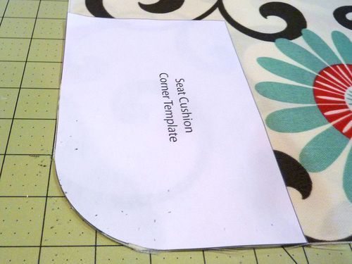 Em seguida, transfira as medidas para os tecidos escolhidos. Se você quiser fazer os cantos arredondados, utilize o molde, ou faça os cantos retos mesmo, se preferir.