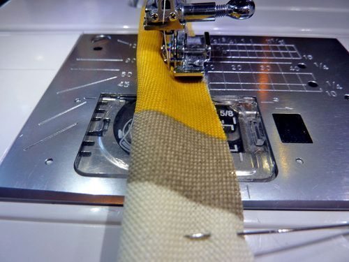 Agora, costure as tiras no encosto. Duas tiras devem ficar na parte superior e duas na parte inferior.