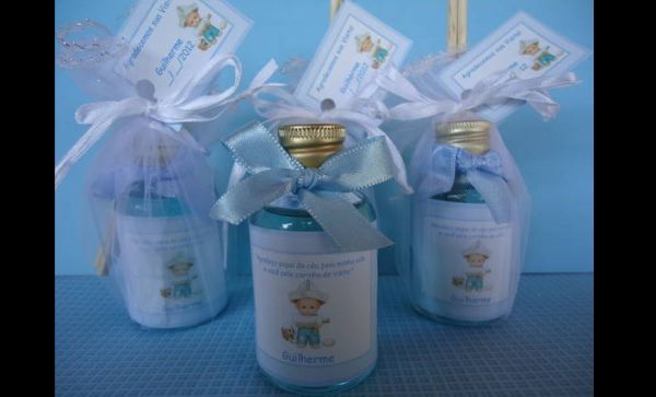 Para oferecer o aromatizador como lembrancinha de maternidade, fixe no vidrinho uma etiqueta com bichinho, flores delicadas, minibichinhos de pelúcia ou o enfeite infantil que você desejar. O líquido pode ser o que você aprendeu a fazer anteriormente.