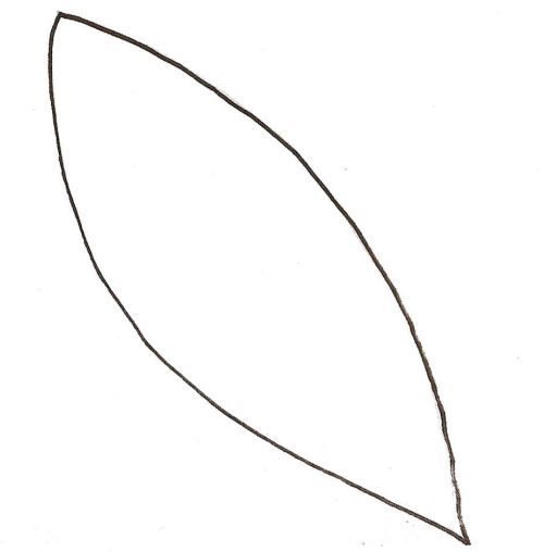 Em seguida, transfira e corte no papelão o molde da folha, com formato ovalado e com as pontas bem pontiagudas. O tamanho da folha irá depender da sua preferência. Em seguida, você deve transferir este molde para os papéis de scrapbooking ou outros papéis escolhidos, recortando todas as folhas posteriormente.