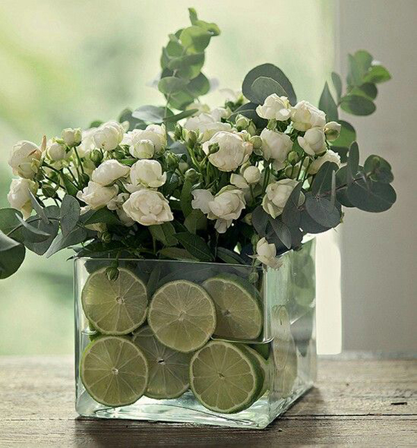 Para o seu casamento você também pode optar pelo processo de como fazer arranjos de flores naturais em vaso de vidro, que pode ter fatias de limões ou limões inteiros dentro do vaso de vidro, juntamente com as flores escolhidas.
