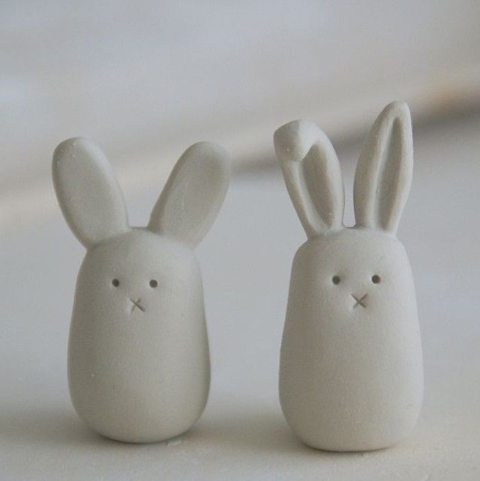 Você pode criar um facinho boneco de argila apenas fazendo bolinhas e cilindros de argila e unindo estas partes. Você até pode deixar o seu boneco com a cor original, se não quiser pintar. Coelhinhos fofos também podem ser feitos de argila e apenas com cilindros de massa.