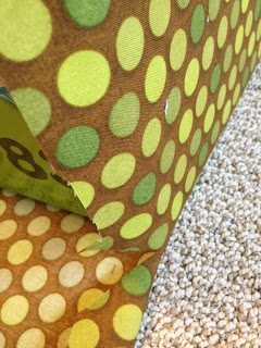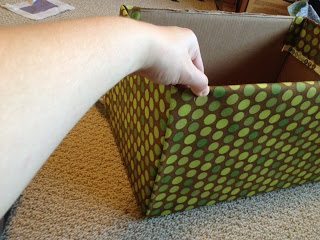 Em seguida, comece a encapar a sua caixa de fralda com o tecido.